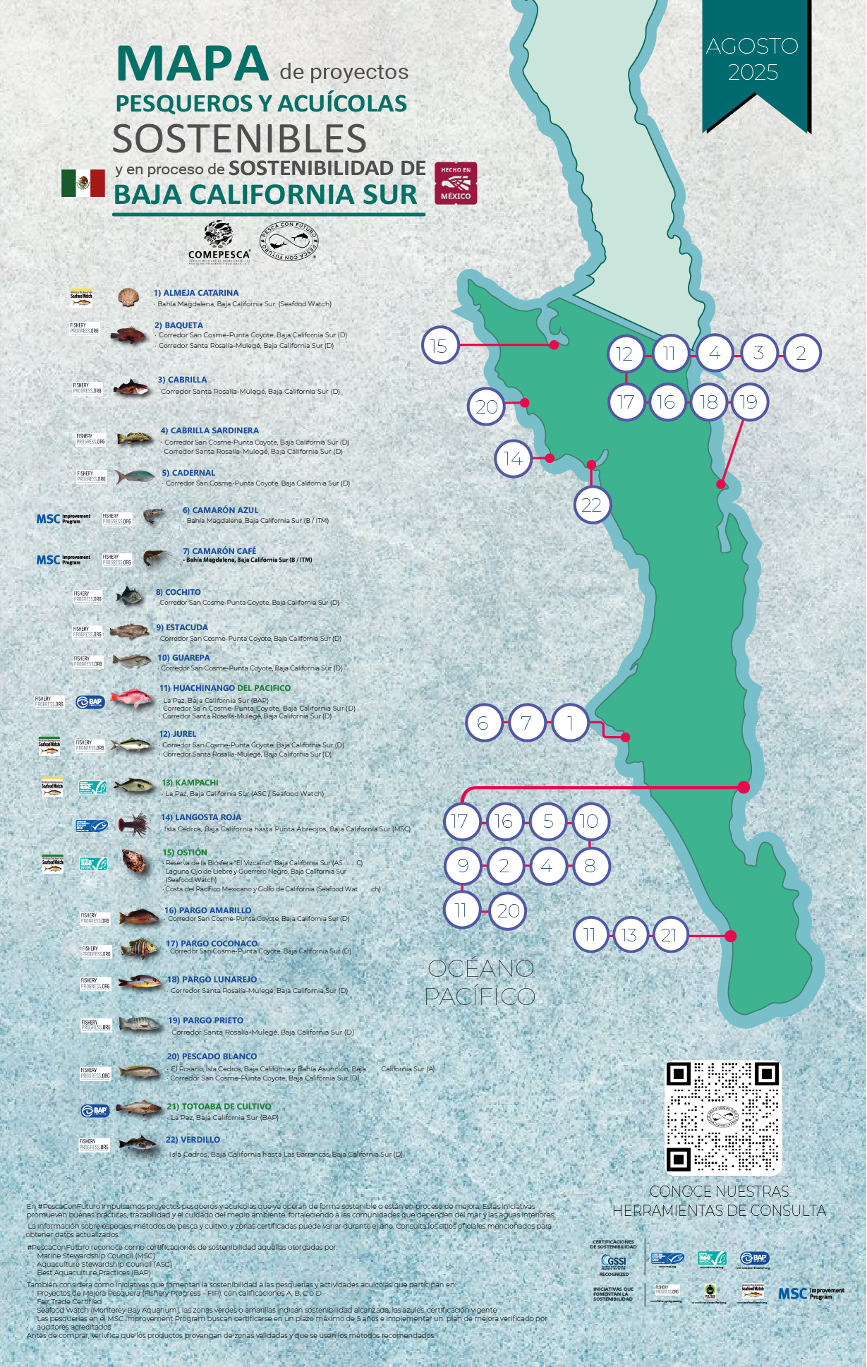 MAPA DE PROYECTOS PESQUEROS Y ACUÍCOLAS SOSTENIBLES Y EN PROCESO DE SOSTENIBILIDAD DE BAJA CALIFORNIA SUR